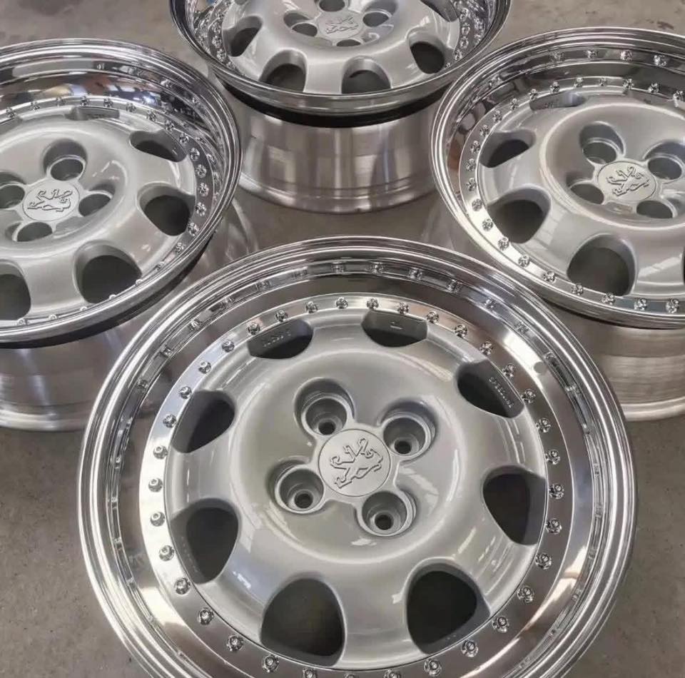 Jantes Peugeot 205 – Speedline 17″ en 3 parties → Jeu complet en 3 parties Idéal pour un projet GTI, T16 ou Dimma Custom. Qualité supérieure.